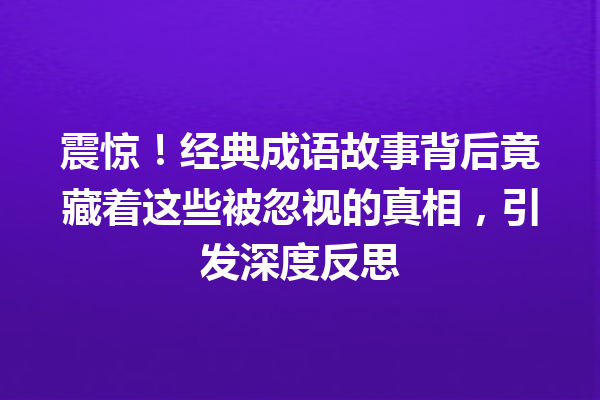 文章将深入剖析经典成语故事,带你揭开那些鲜为人知的真相。通过对这些故事的反思,我们能从中学到不一样的人生智慧,对历史和文化也会有更深刻的理解。快来跟着我们一起探索经典成语故事背后的奥秘,开启一场深度的反思之旅吧!