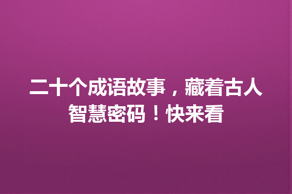 这二十个成语故事就像是一座智慧的宝库,等待着我们去挖掘和探索。让我们一起走进这个奇妙的世界,感受古人的智慧和魅力吧!