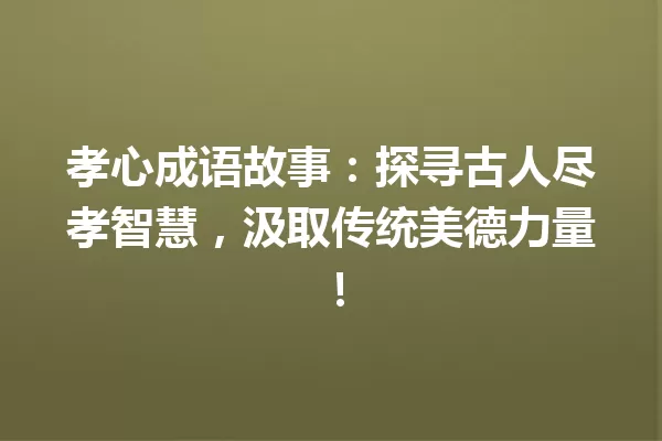 孝心成语故事:探寻古人尽孝智慧,汲取传统美德力量!