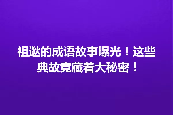 祖逖的成语故事曝光!这些典故竟藏着大秘密!