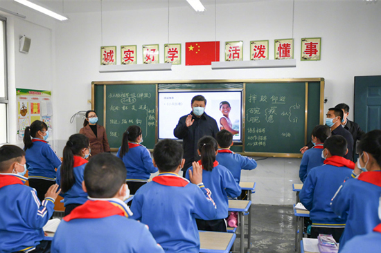 2020年4月21日,习近平总书记在陕西省安康市平利县老县镇中心小学考察。(图片