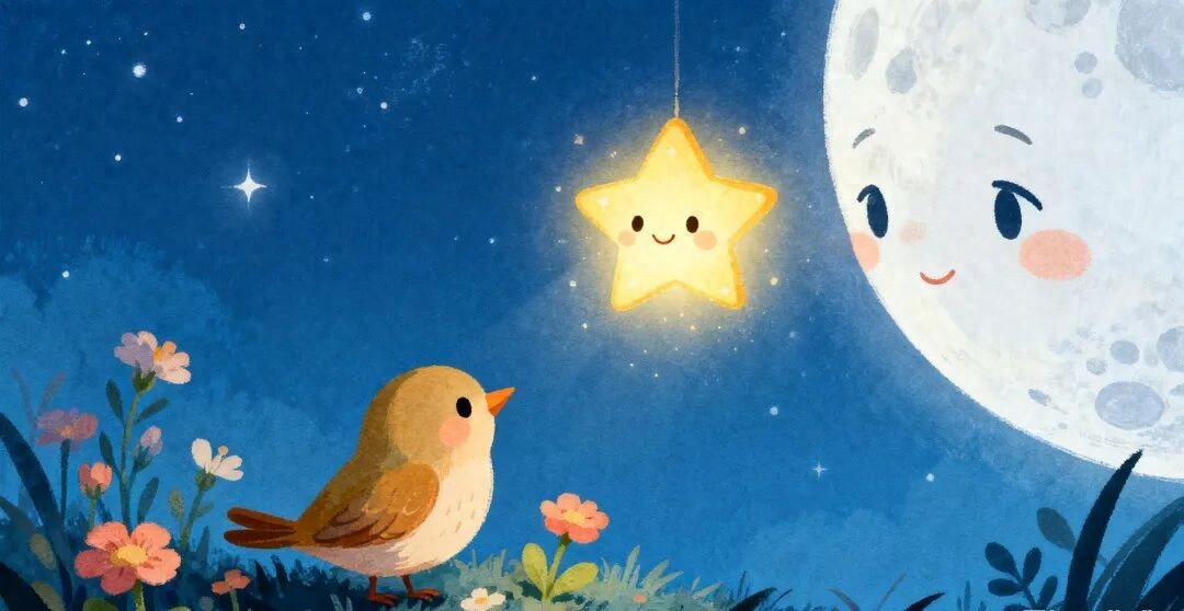 小星星悲伤地注视着天空,”我为什么不能发光呢?”她哭诉道。