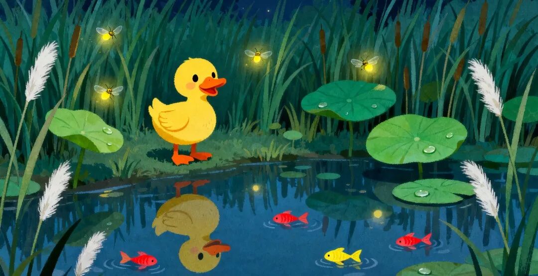 “晚安,池塘里的小鱼,”他嘎嘎叫着。