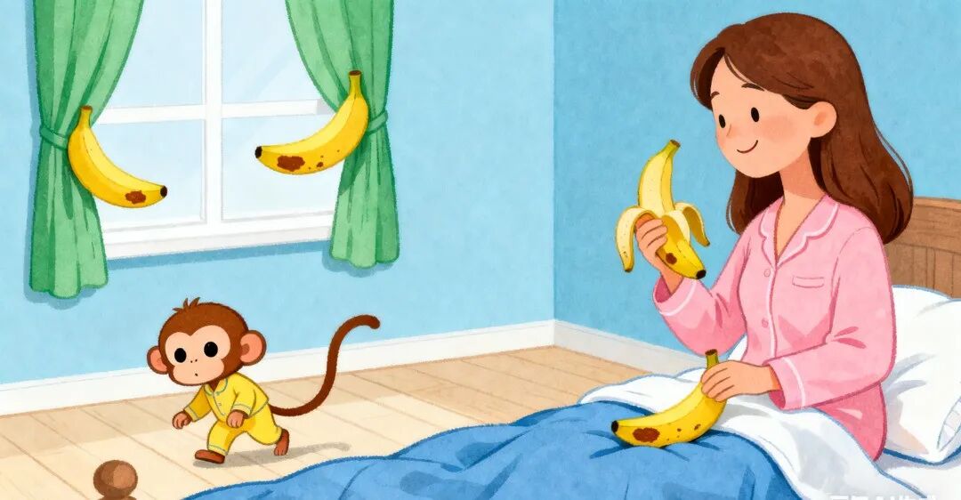小猴子默默说道:“妈妈,能在我睡前陪我一起玩‘找香蕉’吗?”