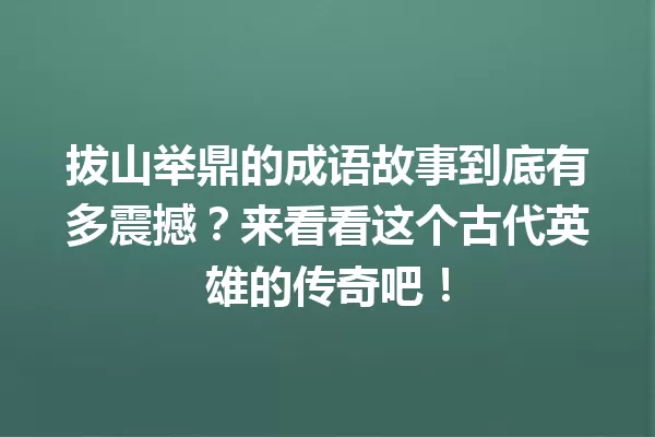 推荐故事:狐狸与乌鸦的智慧较量-揭示谦逊的重要性 文章目录树▼CloseOpen 拔山举鼎的故事渊源 成语的意 […]