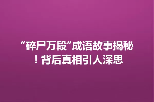 2025年5月31日 Jack, Captain 成语故事 “碎尸万段”成语故事揭秘!背后真相引人深思 推荐故事:战国故事成语故事大揭秘!背后鲜为人知的历史真相曝光 文章目录树▼CloseOpen 相关故事演绎 “ […] Read more