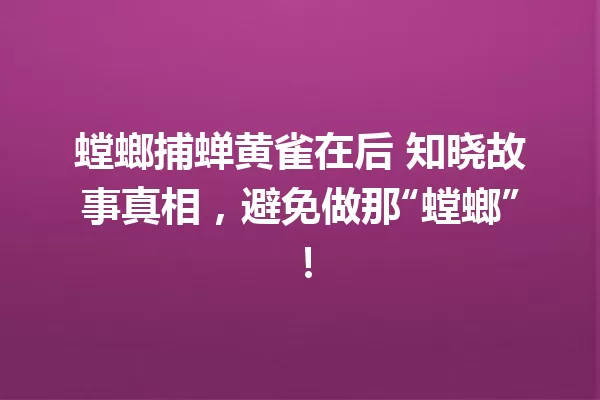 2025年5月31日 Jack, Captain 成语故事 螳螂捕蝉黄雀在后 知晓故事真相,避免做那“螳螂”! 推荐故事:精卫填海:坚韧不拔的感人传说 文章目录树▼CloseOpen 故事中的角色寓意 现实生活中的 文化意 […] Read more