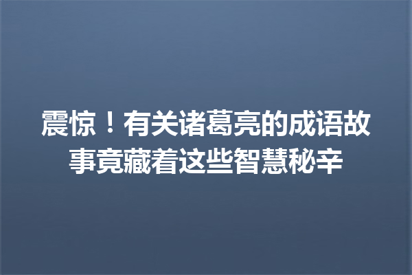 2025年5月12日 Jack, Captain 成语故事 震惊!有关诸葛亮的成语故事竟藏着这些智慧秘辛 推荐故事:揭开民间故事的神秘面纱:经典传说与现代解读 文章目录树▼CloseOpen 鞠躬尽瘁:忠诚与奉献的典 […] Read more