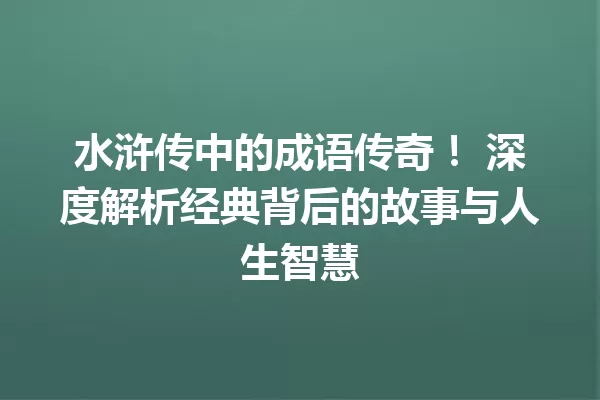 2025年6月5日 Jack, Captain 成语故事 水浒传中的成语传奇! 深度解析经典背后的故事与人生智慧 推荐故事:掩耳盗铃:自欺欺人终无益 文章目录树▼CloseOpen 成语的典型举例 成语的文化意义 经典成语归 […] Read more