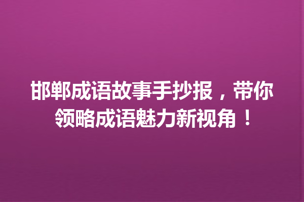 2025年5月10日 Jack, Captain 成语故事 邯郸成语故事手抄报,带你领略成语魅力新视角! 推荐故事:中国古代成语故事-深刻寓意背后的历史启示 文章目录树▼CloseOpen 手抄报助力成语学习 制作手 […] Read more
