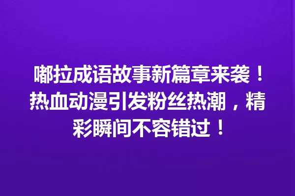嘟拉成语故事新篇章来袭!热血动漫引发粉丝热潮,精彩瞬间不容错过!
