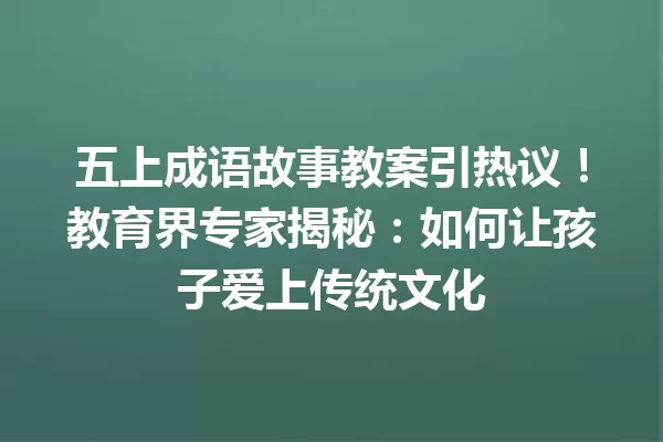 五上成语故事教案引热议!教育界专家揭秘:如何让孩子爱上传统文化
