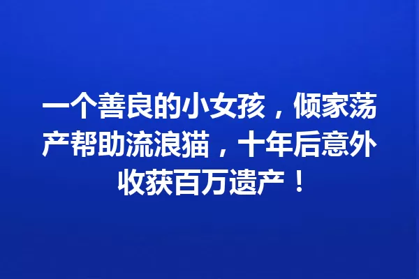 2025年6月6日 Jack, Captain 成语故事 一个善良的小女孩,倾家荡产帮助流浪猫,十年后意外收获百万遗产! 推荐故事:成语故事大全:经典传承的智慧结晶 文章目录树▼CloseOpen 倾家荡产的选择 意外的收获 善良的 […] Read more