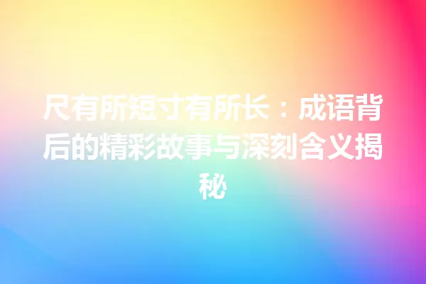 2025年6月7日 Jack, Captain 成语故事 尺有所短寸有所长:成语背后的精彩故事与深刻含义揭秘 推荐故事:经典寓言故事掩耳盗铃的深刻寓意解析 文章目录树▼CloseOpen 成语的故事背景 生活中的应用 表 […] Read more
