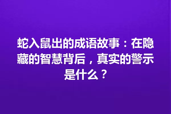 2025年6月5日 Jack, Captain 成语故事 蛇入鼠出的成语故事:在隐藏的智慧背后,真实的警示是什么? 推荐故事:中国民间故事:八仙过海的奇幻旅程 文章目录树▼CloseOpen 成语的来源 成语的意义 现实生活中 […] Read more