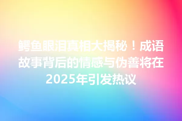 2025年6月6日 Jack, Captain 成语故事 鳄鱼眼泪真相大揭秘!成语故事背后的情感与伪善将在2025年引发热议 推荐故事:女娲补天:古代神话中的慈爱与勇气 文章目录树▼CloseOpen 成语的起源 情感与伪善的结合 哲学 […] Read more