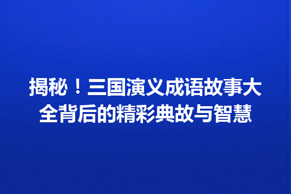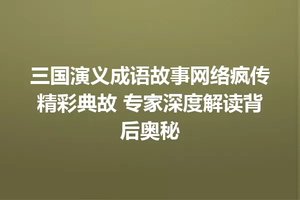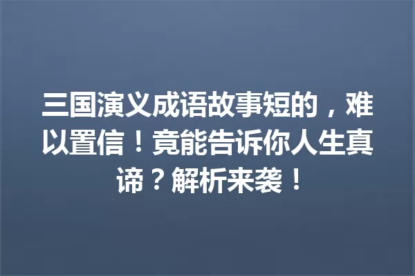 三国演义成语故事短的,难以置信!竟能告诉你人生真谛?解析来袭!