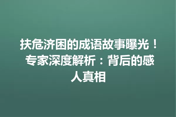 2025年6月6日 Jack, Captain 成语故事 扶危济困的成语故事曝光! 专家深度解析:背后的感人真相 推荐故事:成语背后的历史故事-探秘成语的起源与妙趣 文章目录树▼CloseOpen 真实故事:历史中的扶危济困 […] Read more