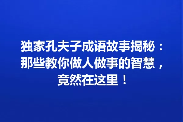 独家孔夫子成语故事揭秘:那些教你做人做事的智慧,竟然在这里!