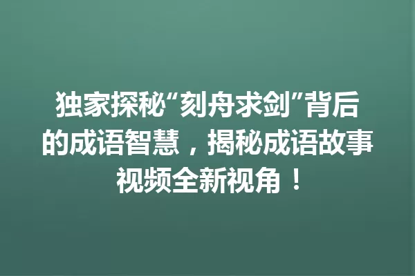 独家探秘“刻舟求剑”背后的成语智慧,揭秘成语故事视频全新视角!