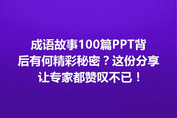 成语故事100篇PPT背后有何精彩秘密?这份分享让专家都赞叹不已!