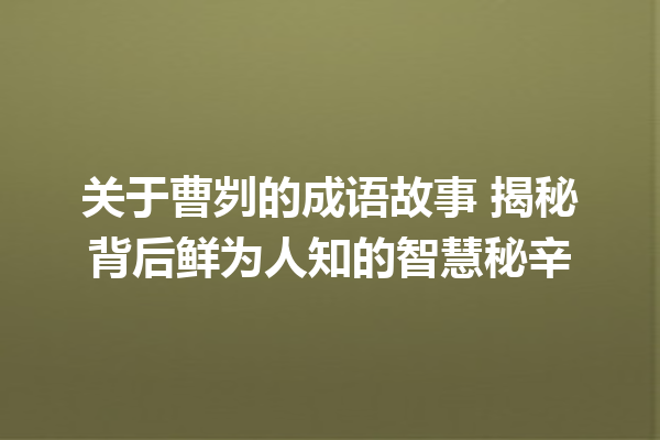 2025年5月8日 Jack, Captain 成语故事 关于曹刿的成语故事 揭秘背后鲜为人知的智慧秘辛 推荐故事:卧冰求鲤成语故事背后,隐藏着怎样的至孝秘密? 文章目录树▼CloseOpen 曹刿的“再衰三竭”智慧 […] Read more