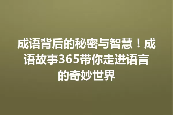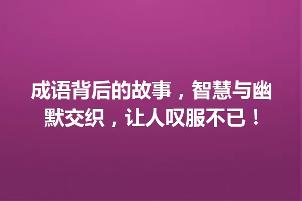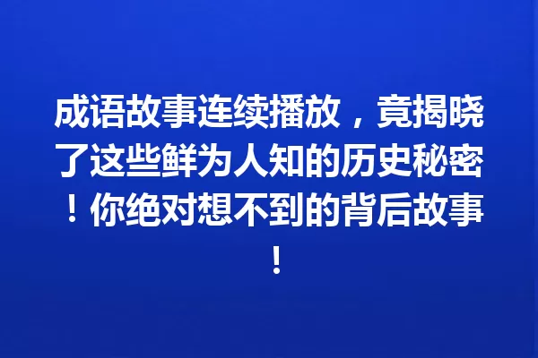 成语故事连续播放,竟揭晓了这些鲜为人知的历史秘密!你绝对想不到的背后故事!