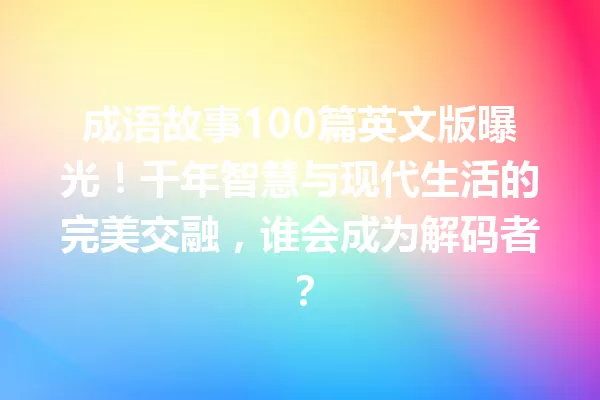 成语故事100篇英文版曝光!千年智慧与现代生活的完美交融,谁会成为解码者?