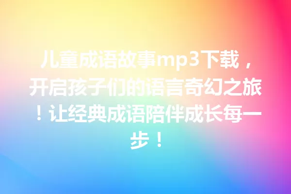 儿童成语故事mp3下载,开启孩子们的语言奇幻之旅!让经典成语陪伴成长每一步!