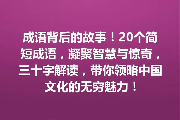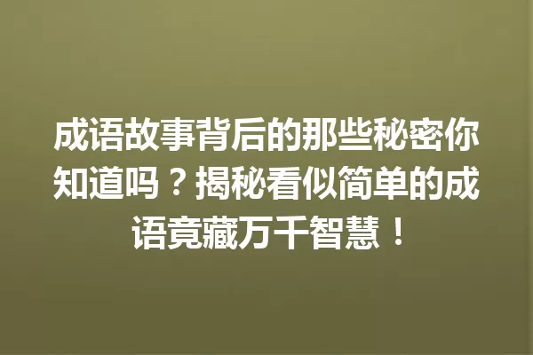 成语故事背后的那些秘密你知道吗?揭秘看似简单的成语竟藏万千智慧!